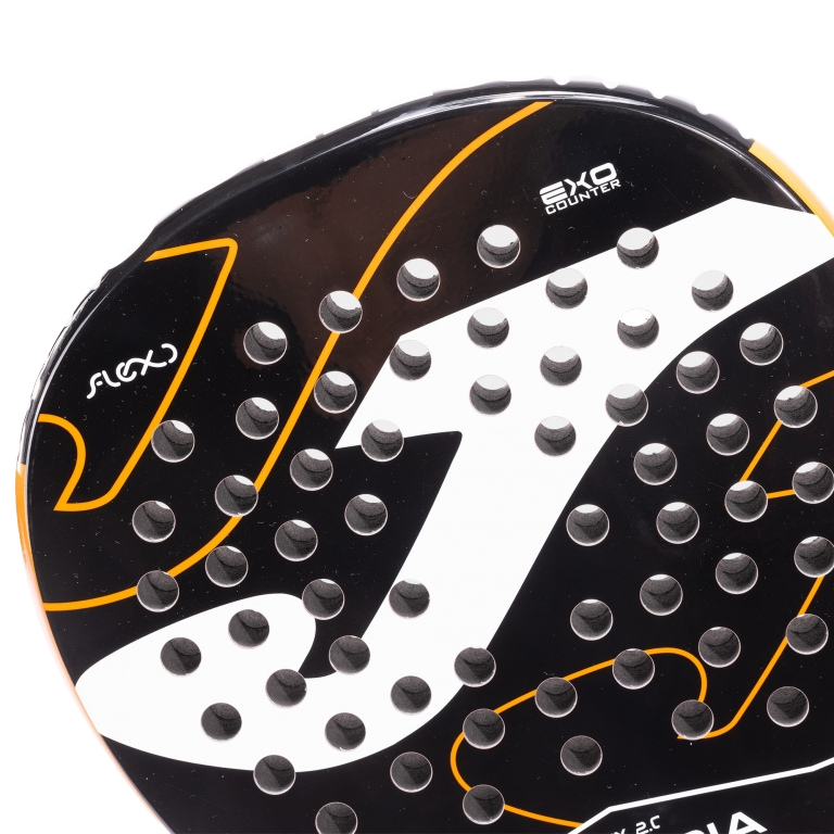 Sein FLEXO BlackEVA-Kern in Kombination mit den FlexSHIELD-Graphitfasern bietet einen größeren Sweet Spot und einen optimalen Ballausstoß, was außergewöhnliche Kontrolle und Kraft bei jedem Schlag ermöglicht. Dies macht es zu einem perfekten Schläger für diejenigen, die eine einfachere Ausführung der Schläge wünschen, ohne dabei an Präzision zu verlieren.